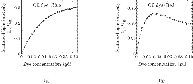 the dye concentration increases. That is, the scattered light intensity may be