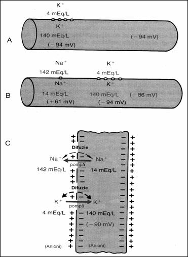 the existence of an MP in diastole of -55 mV to-60 mV, negativity which is caused by the flow of