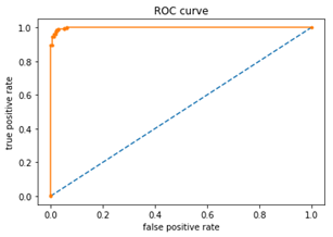 The model was trained for 50 epochs on an i7 CPU with Keras Model Checkpoint callback to avoid overfitting. The final AUC attained was 0.95 and accuracy attained was 98%. In the following ROC curve, x-axis denotes false positive rate and y- axis denotes true positive rate. The ROC curve tells us how well the model can distinguish between both the classes. The AUC or Area Under the Curve is 0.95 which states that the model can clearly distinguish between normal and BPD.