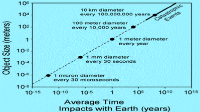 While the asteroid belt is considered the most probable source of meteorite origin, some meteorites have chemical structures similar to samples collected from the surface of the moon, (where Allan Hills 81005 is the first meteorite from the origin of the moon) and others believe that it came from Mars due to collisions of other asteroids or from The path of volcanic eruptions on its surface. Records from the past time have shown that large meteorites cause tremendous damage to the planet Earth and to life on it. A collision of a large meteorite with the earth may lead to the generation of a crater with a diameter of 10-20 km, at about twice its diameter. Such meteorite impacts with the planet Earth lead to the generation of a force equivalent to the force of an explosion between one nuclear bomb to thousands of nuclear bombs (see figure 5).