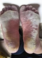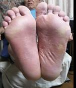 (3) Excretion from feet: Fig.3 show the examples for Uric acid crystals excreted from soles. The uric acid crystals are especially excreted from the soles of feet.